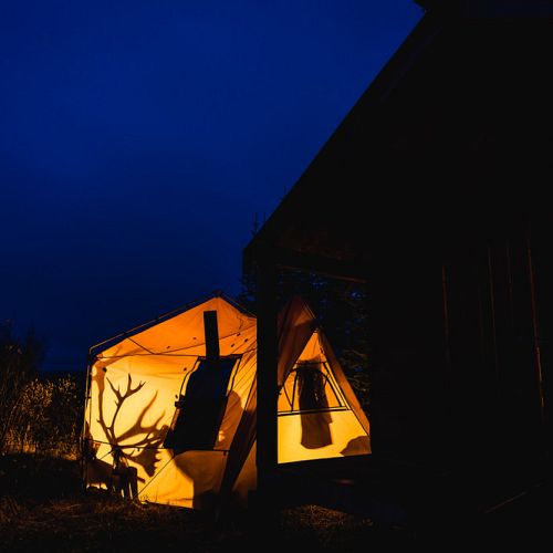 Jagtlejrene og placeringen i området varierer i forhold til terræn og vegetationen. Outfitteren råder over 16 små standardhytter, eller store teltelejre med brændeovne og alle de basale behov på alle hesteryg- og bådjagts camps.