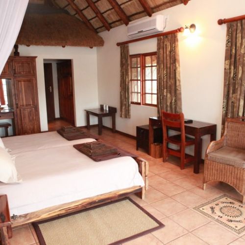 Den skønne lodge, River View, ligger direkte ned til Njelele-floden. Lodgen er af høj standard og består af “bungalows” og værelser med eget bad og toilet, air-condition, våbenskab og køleskab samt privat terrasse.