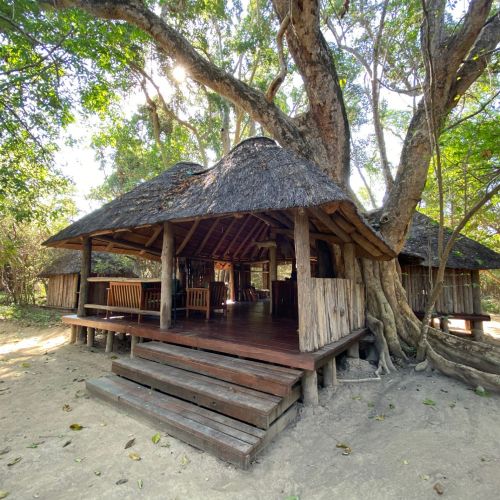Otte stråtækte bungalows gemt under skovens tætte træer ved bredden af Mnyera floden, som er meget komfortabel og har plads til 16 kunder. Campen har en stråtækt opholds/spiseplads, 220 volt elektricitet, daglig vaskeservice, fuldt forplejning.