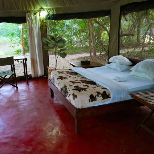 En smuk teltlejr i østafrikansk stil med spektakulær udsigt over Pitu floden. Her kan du nyde luksussen ved dit eget private strandområde ved hvert telt! Rummelige telte, stråtækt opholds/spiseplads, 220 volt elektricitet, daglig vaskeriservice, fuld forplejning.