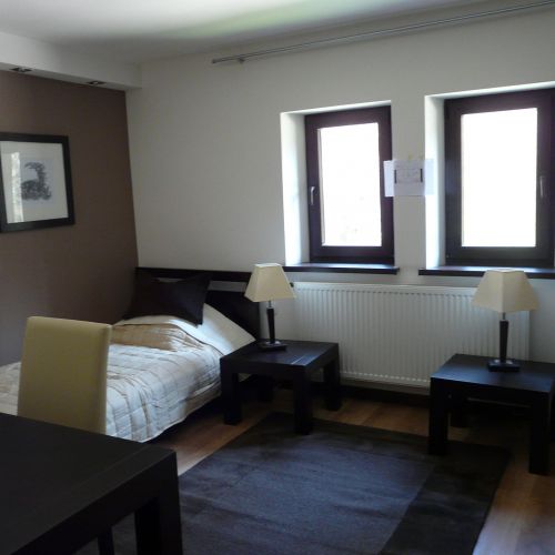Indkvarteringen finder sted i revirets jagthus midt i skoven i skønne omgivelser med 2 km til nærmeste nabo. Der serveres rigtig god mad. Jagtförsteren Piotr taler godt tysk. Gæsteafdelingen på 1. sal rummer foruden en hyggelig opholdsstue 6 dobbelt-værelser og et tre-sengsværelse. Alle værelser er med egne toilet- og badeværelser. I opholdsstuen er køleskab til rådighed. Der er adgang til aflåst garage og kølehus. Der er Wi-Fi og mobildækning.