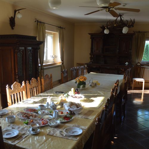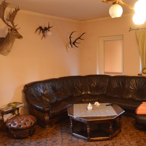 Indkvarteringen finder sted i revirets jagthus i reviret, hvorfra man i kronvildtets brunst i september kan høre hjortene brøle lige udenfor huset. Gæsteafdelingen på 1. sal rummer 1 enkeltværelse, 4 dobbeltværelser, 3 3-sengs værelser samt 1 4-sengs værelse. Der er køleskab til vores gæsters rådighed. I underetagen er en hyggelig opholdsstue med pejs samt spisestue. Der er adgang til aflåst garage og kølehus. Jagtførsteren hedder Franciszek Matysiak, og han taler lidt tysk. Han og hans jagtførere er særdeles professionelle og vellidte blandt vores kunder. Der er Wi-Fi og mobildækning.