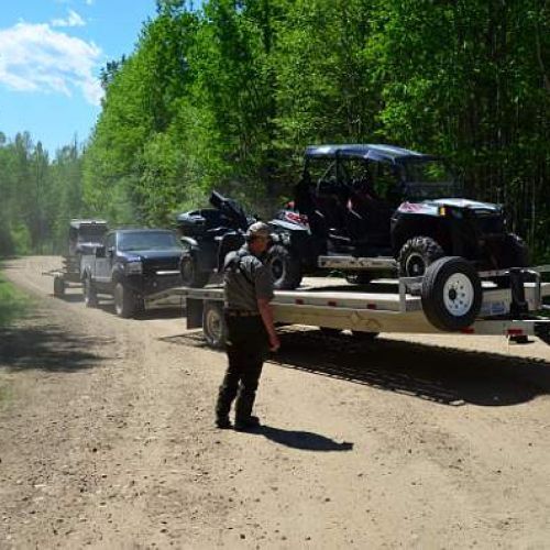Under jagten transporteres jægerne rundt i området med Argo ATVs, almindelige ATVs, UTVs og 4x4-køretøjer, afhængigt af terrænets beskaffenhed. Jagten foregår primært i åbne skovfældninger, på oliefelter og langs gamle skov- og transportveje, hvor nyt græs og friske planteskud tiltrækker bjørne i foråret.