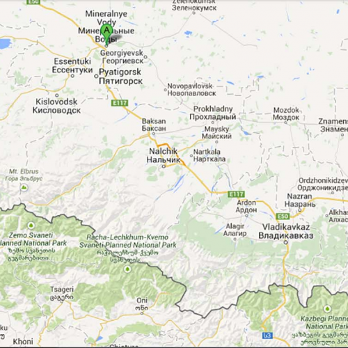 Jagten er organiseret i Kabardino – Balkaria republikken. Denne republik er en del af den Russiske føderation. På kortet ”A”-Mineralnye Vody, ”B” - Moskva