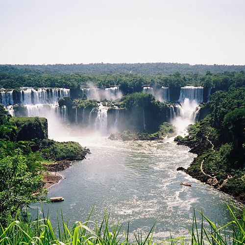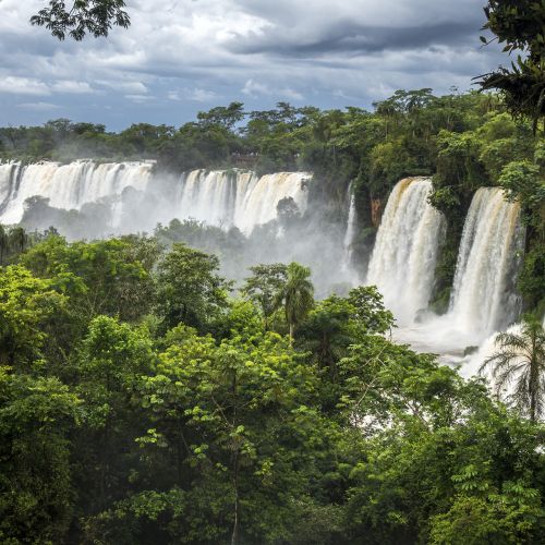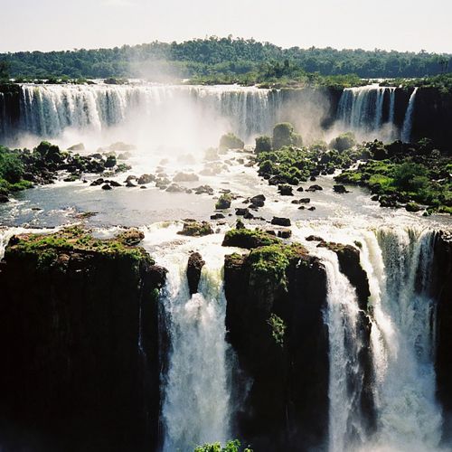 Iguazu-vandfaldet består af 275 enkelte vandfald på et område, der er mere end tre kilometer i bredden, og det samlede vandfald strækker sig faktisk ind over grænsen til både Argentina, Brasilien og Paraguay. Afhængigt af hvilket land man betragter vandfaldet fra, får man forskellige, magiske oplevelser. I Argentina får man det forkromede overblik og flere fantastiske udsyn ud over det buldrende vandfald. For fotografer er Iguazu-vandfaldet, og nationalparken i det hele taget, et rent paradis, og selvom billederne på ingen måde kan retfærdiggøre det naturskønne fænomen, kan man stadig få nogle imponerende billeder i kassen. På Argentina-siden er der også gode chancer for at komme helt tæt på vandet, for på en af de mange sejlture der tilbydes, sejler man hele vejen ind under de kraftfulde vandstrømme. Omvendt kan man også få fantastiske oplevelser ved at betragte vandfaldene på afstand, og derved høre den dybe og rungende lyd flere kilometer væk. Få den ultimativt vildeste oplevelse ved at kigge lodret ned i et af stedets hovedattraktioner, nemlig Garganta del Diablo (Djævlens Gab), hvor naturens rå kraft udfolder sig lige for næsen af en.