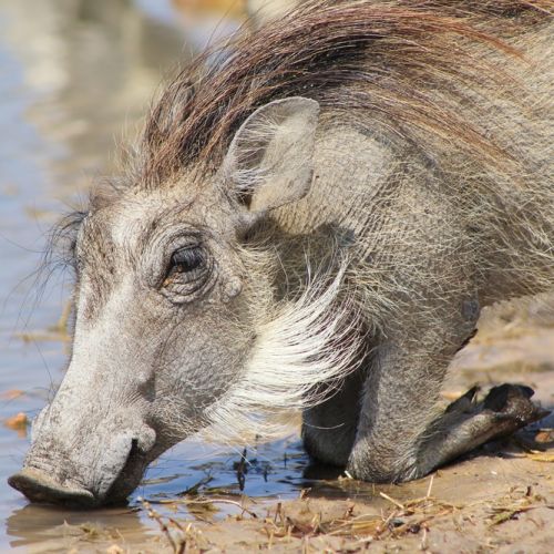 Beskrivelse: Man ved meget lidt om dette middelstore vildsvin : Kort gråbrun pels, lange hjørnetænder i underkæben. Underkæben besat med lange barter (heraf navnet).