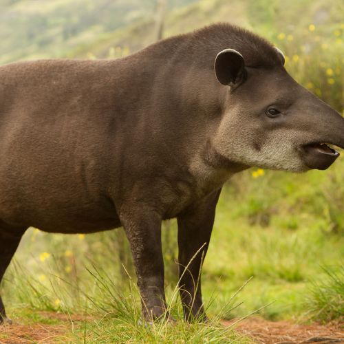 Beskrivelse: Kropsvægt indtil 250 Kg. Kropslængde over 2 meter. Pels mørkebrun med kraftig behåring (Kaldes også uldtapir), hvidlige læber. Ellers er arten temmelig ukendt.