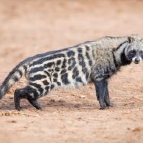 Beskrivelse: Mellemstort dyr, der ligner en mellemting af en mår og en grævling. Civet'en vejer op til 20 kg og kan opnå en højde på ca. 40 cm.