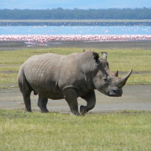 Beskrivelse: Det hvide næsehorn er næst efter elefanten og flodhesten det største landlevende pattedyr. Næsehornet har en kompakt krop og korte kraftige ben. Den opnår en vægt på 2,5 tons og en højde på 1,5 - 1,7 m. Det hvide næsehorn har to horn hvoraf det forreste er det største.