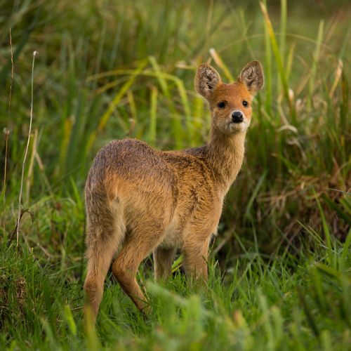 Beskrivelse: Lille hjort med en kropsvægt på max. 15 kg og en skulderhøjde på ca. 55 cm. Grundfarven er gulbrun om sommeren og gråbrun om vinteren. Vandrådyret har intet gevir, men har til gengæld lange synlige hjørnetænder i overkæben.