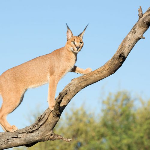 Beskrivelse: Middelstort dyr af kattefamilien, der i udseende minder meget om en los. Caracalen kan veje op til 25 kg og opnå en skulderhøjde på 50 cm. Skindet er brunt med sorte aftegninger på ørerne. Yderligere har den forlænget hårvækst på ørespidserne. Caracalen har mellemlang hale.