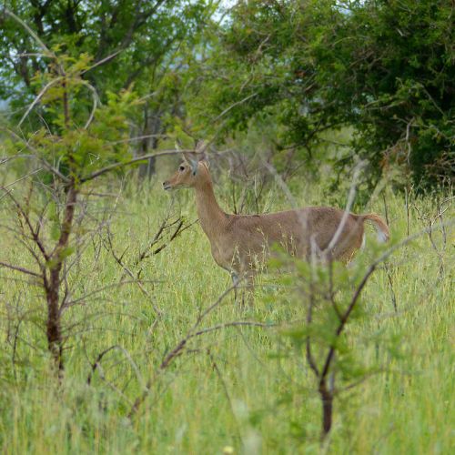 Jagtmetode: Pürsch eller sporjagt med trackere. En anden metode kan være at placere sig i et træ i nærheden af de græsområder der benyttes af reedbucken, da den holder af ligge i det mellemlange græs under middagsheden.