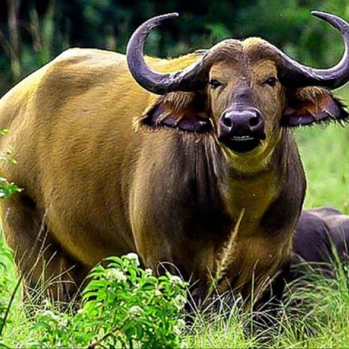 Beskrivelse: Den Dværgskovbøffel er en mindre underart af den afrikanske bøffel. Den har en kompakt og muskuløs krop med en skulderhøjde på omkring 100-120 cm og en vægt på 250-320 kg. Pelsen varierer fra rødbrun til mørkebrun, ofte mørkere hos hannerne. Hornene er kortere og mere opadvendte end hos andre bøffelarter. Dværgskovbøflen er sky, mere territorial og mindre floklevende end sin større slægtning, Kaferbøflen.