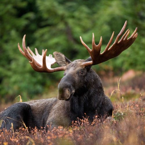 Beskrivelse: Stor hjorteart (den største) der opnår en skulderhøjde på op til 220 cm og en vægt på 200 - 400 kg. Farven på pelsen er mørkebrun. Elgen kendes let på størelsen, de meget lange ben samt den karakteristiske overhængende overlæbe. Med hensyn til geviret tales der om to typer: Den palmate, hvor geviret er skovlformet, og den cervine hvor geviret er forgrenet.