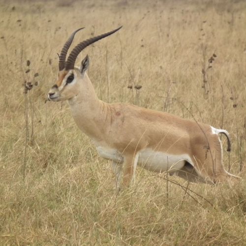 Beskrivelse: Middelstor gazelle med en skulderhøjde på 95 cm og en vægt på 60 - 85 kg.