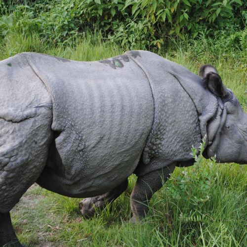Beskrivelse: Af de 3 asiatiske næsehorn ligger denne art størrelsesmæssigt i midten. Kropsvægten er på op til 1.400 Kg, med en Kropslængde uden hale(60 cm) op til 310 cm, samt en skulderhøjde på 150 cm.