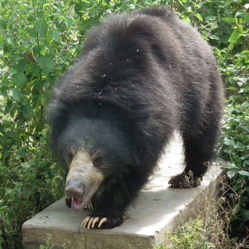 Beskrivelse: Nataktiv, middelstor bjørn med sort, mankeagtig og glinsende pels. På brystet har den en lys hesteskoformet plet. Snudepartiet er nøgent. Den mangler de to midterste tænder i overmunden hvilket nok skyldes at den "suger" termitter ud af deres boer og kan forstærke sugekraften da disse to tænder mangler. Kropsvægt op til 115 Kg og en kropslængde uden hale (12 cm) på 200 cm, samt en skulderhøjde på ca. 90 cm.