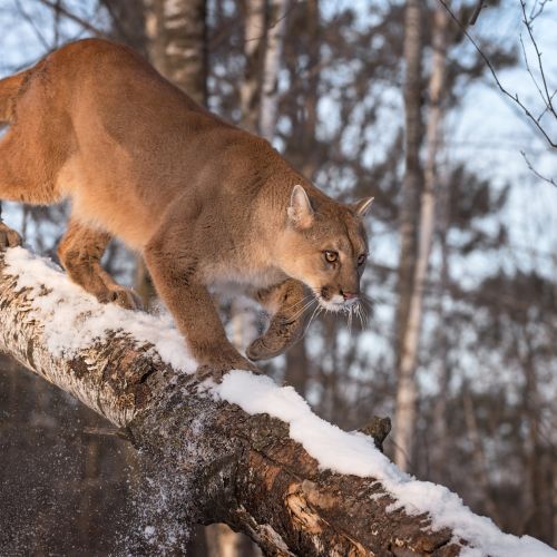 Jagtmetode: Pürsch, med specielle hunde, som bliver sat efter friske spor og som skal tvinge pumaen til at kravle op i et træ, Fælder.