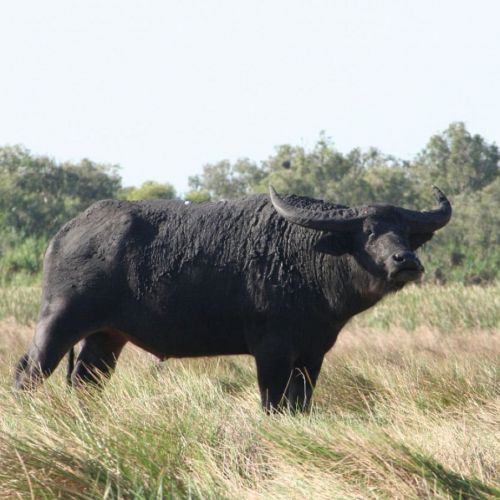 Beskrivelse: Stor vildokse, der af mange anses for at være domesticeret. Hornene er bagudbøjede med stort udlæg. Kropsvægt, indtil 900 Kg og en skulderhøjde på maksimalt 180 cm. Kropslængden uden hale (100 cm) omkring 300 cm Pelsfarve gråbrun, ofte dækket af slam.