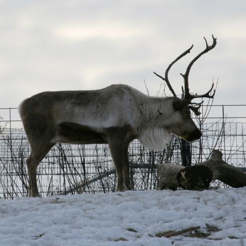Beskrivelse: Stor hjorte art med en kropsvægt på op til 230 kg. Skulderhøjde, indtil 1,30 meter og en kropslængde på indtil 2,20 meter. Pelsfarve om sommeren er chokoladebrun med hvide partier på forkroppen. Om vinteren næsten helt hvid, særligt de nordlige bestande. Begge køn bærer horn, dog er tyrens kraftigst. Geviret drejer bagud og derefter fremad i en halvcirkel. Øjensprossen er ofte udformet som en skovl á la dåhjortens. Resten af geviret har talrige takker. Gevirvægt på op til 12 kg.