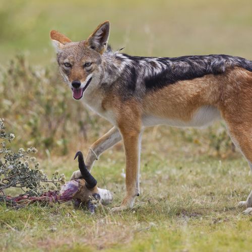 Beskrivelse: Mindre rævelignende dyr der vejer op til 10 kg og måler 45 cm over skuldrene. Pelsfarven er gulbrun i hovedet, på halsen,på forben og bagben samt ned langs siderne. Nakken, ryggen og halen er nærmest sølvgrå med en sort stribe der afgrænser det grå område.