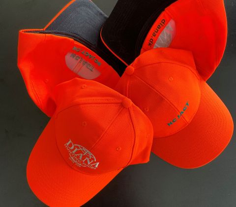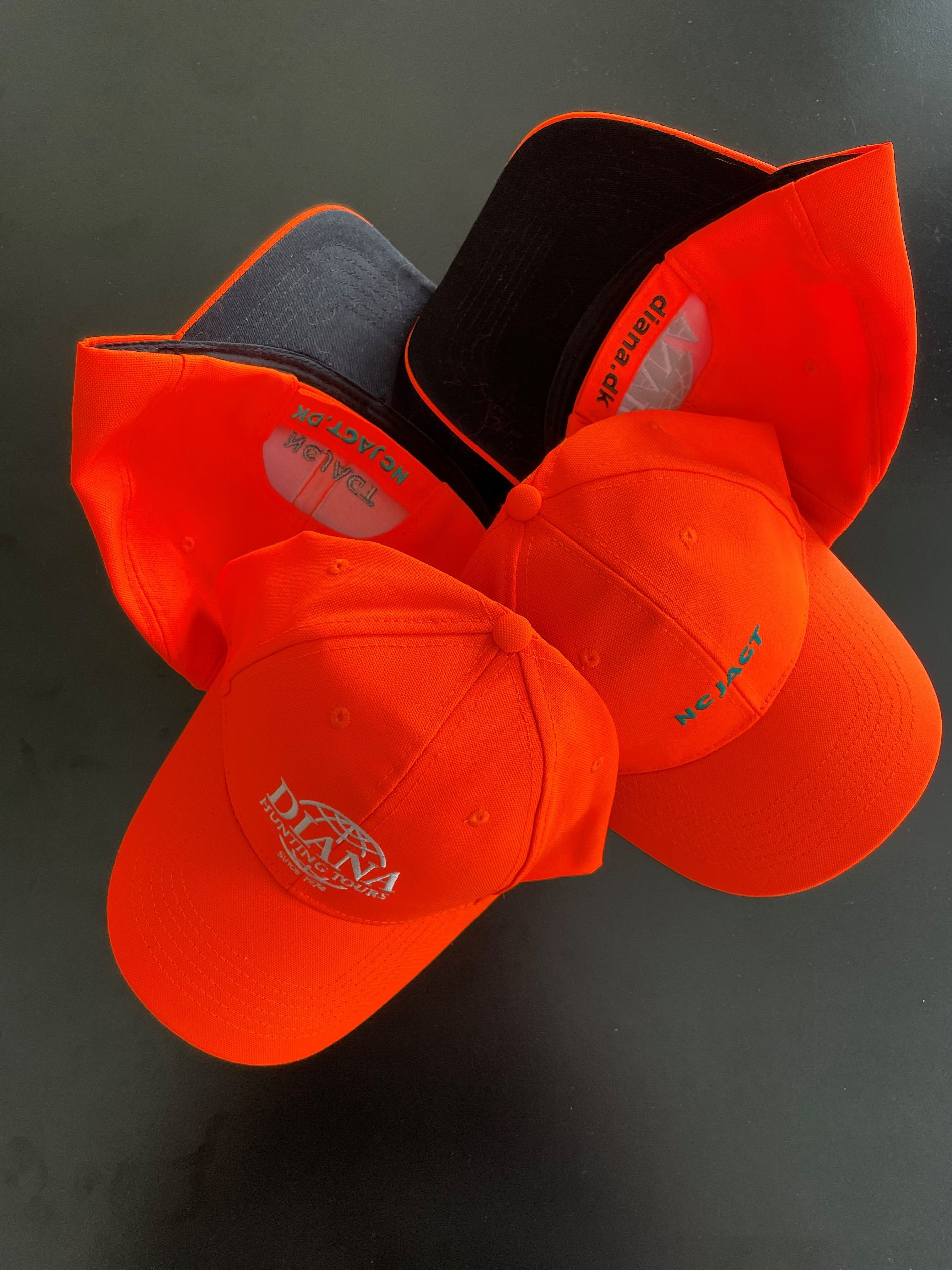 Orange-sikkerhedscap med DIANA-logo. Så er du altid synlig under jagten, både når du pürscher og når du står ved en post på drivjagten.